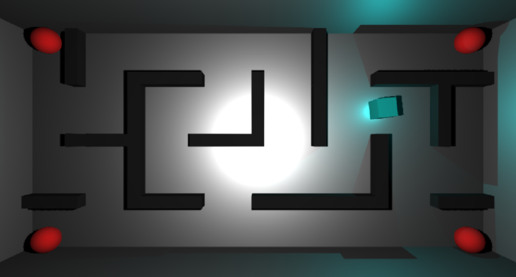 The black glowing sphere is the only source of light in the box, so it is helpful to memorize the layout of the maze inside the box as the sphere is falling.